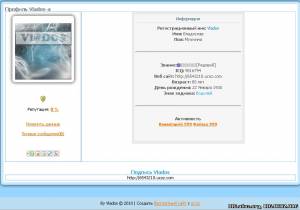 Code <html> <head> <title>Профиль</title> <link type="text/css" rel="StyleSheet" href="/_st/my.css" /> </head> <body style="background:#98D6FF; margin:0px; padding:0px;"> $ADMIN_BAR$ $GLOBAL_AHEADER$ <table border="0" cellpadding="10" cellspacing="0" width="100%"><tr><td valign="top" align="center"> <!-- <middle> --> <table border="0" cellpadding="0" cellspacing="0" width="100%"> <tr> <td valign="top" style="width:203px;"> </td> <td valign="top" style="padding:0px 10px 0px 10px;"> <table border="0" cellpadding="0" cellspacing="0" width="100%"> <tr><td width="10" height="10"><img src="http://i071.radikal.ru/0902/ff/3bd0bff61a01.png" border="0"></td><td style="background:url('http://s41.radikal.ru/i093/0902/77/290b6ff174f7.png');"></td><td width="10" height="10"><img src="http://s49.radikal.ru/i126/0902/87/94af9881da39.png" border="0"></td></tr> <tr><td style="background:url('http://s59.radikal.ru/i164/0902/f8/326a55f011dc.png');"></td><td style="background:#FFFFFF;padding:5px;"> <!-- Start Profil v1.0 by Vlados --> <table width="100%" cellpadding="0" cellspacing="0" border="0"> <tr><td style="border: 0px solid #72B8E6;" class="bara"><span style="font-size: 10pt; color:707070;"><b>Профиль $_USERNAME$-a</b></span></td></tr> <td style="border: 0px solid #72B8E6;"> <table style="border: solid 0px #72B8E6;" border="0" width="100%" cellspacing="0" cellpadding="0"> <td style="border: solid 1px #72B8E6;" width="200" valign="top" align="center"> <div align="center"> <table border="0" cellpadding="0" cellspacing="0"> <tbody><tr> <td width="17" background="http://i071.radikal.ru/0902/ff/3bd0bff61a01.png" height="17"> </td> <td background="http://s41.radikal.ru/i093/0902/77/290b6ff174f7.png" height="17"> </td> <td width="17" background="http://s49.radikal.ru/i126/0902/87/94af9881da39.png" height="17"> </td> </tr> <tr> <td width="17" background="http://s59.radikal.ru/i164/0902/f8/326a55f011dc.png"> </td> <td> <?if($_AVATAR$)?><br>$_AVATAR$<?else?><br><img src="http://s53.radikal.ru/i141/1001/d9/9ad61c277188.jpg" border="0"><?endif?> </td> <td width="17" background="http://s60.radikal.ru/i168/0902/c6/a4e3e0816fe3.png"> </td> </tr> <tr> <td width="17" background="http://s60.radikal.ru/i167/0902/26/8cb928874182.png" height="17"> </td> <td background="http://s55.radikal.ru/i147/0902/ea/8f85b050c329.png" height="17"> </td> <td width="17" background="http://i011.radikal.ru/0902/bf/ce48d6da8a98.png" height="17"> </td> </tr> </tbody></table></div> <?if($_GROUP_ICON$)?><br><br>$_GROUP_ICON$<br><?endif?> <br><?if($_REP_READ_URL$)?>Репутация: <a title="View reputation history" class="repHistory" href="$_REP_READ_URL$"><b>$_REPUTATION$</b> $_REPUTATION_PERCENT$%</a><br> <div id="block4" class="udtb"><div class="udtlb"></div><?if($_REP_DO_URL$)?> <a href="$_REP_DO_URL$"><a href="$_REP_DO_URL$"></a><?endif?></div> <?endif?> <br><?if($_BAN_READ_URL$)?>Замечания: <a class="banPercent" title="Смотреть историю замечаний" href="$_BAN_READ_URL$">$_BAN_PERCENT$%</a><br> <br><?if($_BAN_DO_URL$)?><a href="$_BAN_DO_URL$"><img style="margin:0;padding:0;border:0;" title="Понизить уровень замечаний" src="http://s26.ucoz.net/img/fr/wm.gif" width="10" height="9" /></a><img style="margin:0;padding:0;border:0;" src="http://s26.ucoz.net/img/fr/w$_BAN_RATING$.gif" width="49" height="9" /><a href="$_BAN_DO_URL$"><img style="margin:0;padding:0;border:0;" title="Повысить уровень замечаний" src="http://s26.ucoz.net/img/fr/wp.gif" width="10" height="9" /></a><?endif?><br><?endif?> <?if($_CHANGE_DETAILS_URL$)?><br><a class="m" href="$_CHANGE_DETAILS_URL$">Изменить данные</a><br><?endif?> <?if($_PM_READ_URL$)?><br> <a class="m" href="javascript://" onclick="openLayerB('Ls',0,'/pm.xml','Личные сообщения',700,500,'1','','',0,'justify'); return false;">Личные сообщения(<b>$UNREAD_PM$</b>)</a> <?endif?> <br><?if($_STATUS$)?><div id="block6" class="udtb">Статус: $_STATUS$</div><?endif?> <br><a href="/index/15-1" title="пользователи"></a><br> <?if($MODER_PANEL$)?><br><div align="center">$MODER_PANEL$</div><?endif?><br> </td> <td style="border: solid 1px #A4CCE6;" valign="top"> <div style="position:relative;float:right;text-align:center;"> <?if($_PM_SEND_URL$)?><div style="padding:10px;" id="userPMread"><a href="javascript://" onclick="openLayerB('Ls',0,'/sendpm.xml','Отправить ЛС',700,500,'1','','',0,'justify'); return false;"><img src="/altele/Email.png" width=32" height="32" border="0"></a> </div><?endif?> </div> <center> <table border="0" cellpadding="0" cellspacing="0" width="300px" height="100px"> <SPAN class="Apple-style-span" style="border-collapse: separate; color: rgb(0, 0, 0); font-family: 'times new roman'; font-size: 16px; font-style: normal; font-variant: normal; font-weight: normal; letter-spacing: normal; line-height: normal; orphans: 2; text-indent: 0px; text-transform: none; white-space: normal; widows: 2; word-spacing: 0px;"><SPAN class="Apple-style-span" style="color: rgb(85, 85, 85); font-family: tahoma; font-size: 11px; line-height: 15px; text-align: left;"><DIV class="giftAd" style="border-bottom: 1px solid rgb(220, 220, 220); font-family: tahoma,'Trebuchet MS',arial,serif; font-size: 8pt; color: rgb(85, 85, 85); line-height: 15px; margin-bottom: 10px;"><DIV class="giftAdBody" style="border: 6px solid rgb(234, 234, 234); padding: 4px 4px 7px; font-family: tahoma,'Trebuchet MS',arial,serif; font-size: 8pt; color: rgb(85, 85, 85); line-height: 15px; background-color: rgb(246, 246, 246); text-align: center;"><DIV style="border-bottom: 1px solid rgb(220, 220, 220); margin: 0px 3px 7px; font-family: tahoma,'Trebuchet MS',arial,serif; font-size: 8pt; color: rgb(85, 85, 85); line-height: 15px; text-align: center; padding-bottom: 2px;"><SPAN style="color: rgb(43, 88, 122); text-decoration: none;">Информация</SPAN><A href="http://yavdruzyah.ru/index/