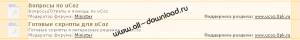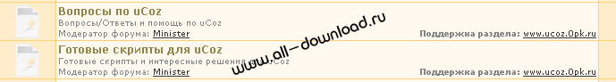 | 1 вариант: Управление дизайном » Таблица стилей (CSS) в самый низ вставляем: Code .s{ float: left; } Далее Форум » Управление форумами находим нужный форум (раздел), жмем изменить и в Описание форума вставляем следующее: Code <div class="s"><b>Поддержка раздела:</b> <a href="ссылка на сайт">Название сайта</a></div> 2 вариант: Управление дизайном » Таблица стилей (CSS) в самый низ вставляем: Code .s{ float: right; } Далее Форум » Управление форумами находим нужный форум (раздел), жмем изменить и в Описание форума вставляем следующее: Code <div class="s"><b>Поддержка раздела:</b> <a href="ссылка на сайт">Название сайта</a></div> Поддержка раздела: - можете менять на свое например спонсор форума и т.д. | |