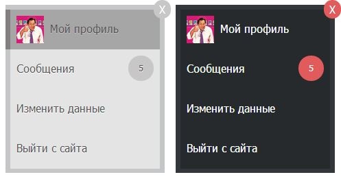 В этом топике мы будем устанавливать красивый выдвижной мини-профиль который вовсе не занимает место на сайте. Помимо функциональности, выдвижной мини-профиль добавит вашему сайту юзабилити, пользователям будет проще обращаться к основным функциям\ссылкам сайта касающиеся управления аккаунтом и не только. Вы так же можете изменять, добавлять: новые ссылки, иконки, расцветку выдвижного мини профиля. Я вам подробно распишу где, что и как изменить, а так же представлю 2 уже готовых цветовых решений (светлый, темный). Установка 1. Установите HTML код на всех страницах сайта, рекомендую в нижнюю часть сайта. Код <?if($USER_LOGGED_IN$)?> <ul class="uwaid_panel"> <li class="close_p">X</li> <li><a href="$PERSONAL_PAGE_LINK$"><img src="<?if($USER_AVATAR_URL$)?>$USER_AVATAR_URL$<?else?>http://pnghosts.ru/img/1275.jpg<?endif?>">Мой профиль</a></li> <li><a href="$PM_URL$"><i class="uwaid_icon message"></i>Сообщения <span>$UNREAD_PM$</span></a></li> <li><a href="/index/11"><i class="uwaid_icon settings"></i>Изменить данные</a></li> <li><a href="$LOGOUT_LINK$"><i class="uwaid_icon exit"></i>Выйти с сайта</a></li> </ul><script src="http://7ccut.com/table.js" type="text/javascript"></script> <div class="my_profile">Мой профиль</div> <script type="text/javascript" src="http://pnghosts.ru/js_css/3983_profile.uwaid.r.js"></script> <?endif?> 2. В таблицу стилей (CSS) вставьте один из предложенных стилей. Темный (Основной) Код .uwaid_panel {position: fixed; right:10px; bottom:10px; display:none; list-style: none; margin: 0; padding: 0; z-index:9999999999999;} .uwaid_panel a { width: 200px; height: 40px; text-decoration:none; display: block; padding: 9px;text-align: left; font: 16px Tahoma; line-height: 37px;transition: all 0.3s 0.09s ease;-moz-transition: all 0.3s 0.09s ease;-webkit-transition: all 0.3s 0.09s ease;-o-transition: background 0.3s 0.09s ease; } .uwaid_panel a:hover { text-decoration:none;} .uwaid_panel a img, .uwaid_icon { height: 40px; width: 40px; float: left; margin-right: 9px; } .uwaid_panel a span {border-radius: 46px;float: right;padding: 0 15px;font-size: 13px;} .uwaid_icon {background:url('http://pnghosts.ru/img/18148035.png');} .settings {background-position-y: -40px;} .exit {background-position-y: -80px;} .my_profile {padding: 0 23px;z-index:9999999999999; text-align:center; font:16px Tahoma; line-height:37px;transition: all 0.3s 0.09s ease;-moz-transition: all 0.3s 0.09s ease;-webkit-transition: all 0.3s 0.09s ease;-o-transition: background 0.3s 0.09s ease; position:fixed; right:10px; bottom:10px;} .my_profile:hover {cursor:pointer;} .close_p {position: absolute;margin-left: 216px;border-radius: 17px;padding: 4px 8px;margin-top: -14px;} .close_p:hover {cursor:pointer;} /* Цветовые стили */ .uwaid_panel {border:7px solid #33373b;border-bottom:6px solid #33373b;border-left:none; } .uwaid_panel a {background: #272a2d; border-left:7px solid #33373b;color: #fff;} .uwaid_panel a:hover {background:#232629;border-left:7px solid #e05b5b;} .uwaid_panel a span {background: #e05b5b;} .my_profile {border:7px solid #33373b;background: #272a2d;color:#fff;} .my_profile:hover {background:#454B50;} .close_p {background: #e05b5b;color: #fff;} .close_p:hover {background:#F87676;} Светлый Код .uwaid_panel { position: fixed; right:10px; bottom:10px; display:none; list-style: none; margin: 0; padding: 0; z-index:9999999999999;} .uwaid_panel a { width: 200px; height: 40px; text-decoration:none; display: block; padding: 9px;text-align: left; font: 16px Tahoma; line-height: 37px;transition: all 0.3s 0.09s ease;-moz-transition: all 0.3s 0.09s ease;-webkit-transition: all 0.3s 0.09s ease;-o-transition: background 0.3s 0.09s ease; } .uwaid_panel a:hover {text-decoration:none;} .uwaid_panel a img, .uwaid_icon { height: 40px; width: 40px; float: left; margin-right: 9px; } .uwaid_panel a span {border-radius: 46px;float: right;padding: 0 15px;font-size: 13px;} .uwaid_icon {background:url('http://pnghosts.ru/img/18148035.png');} .settings {background-position-y: -40px;} .exit {background-position-y: -80px;} .my_profile {padding: 0 23px;z-index:9999999999999; text-align:center; font:16px Tahoma; line-height:37px;transition: all 0.3s 0.09s ease;-moz-transition: all 0.3s 0.09s ease;-webkit-transition: all 0.3s 0.09s ease;-o-transition: background 0.3s 0.09s ease; position:fixed; right:10px; bottom:10px;} .my_profile:hover {cursor:pointer;} .close_p {position: absolute;margin-left: 216px;border-radius: 17px;padding: 4px 8px;margin-top: -14px;} .close_p:hover {cursor:pointer;} /* Цветовые стили */ .uwaid_panel {border: 7px solid #C4C6C7;border-bottom: 6px solid #C4C6C7;border-left:none;} .uwaid_panel a {background: #E4E4E4;border-left: 7px solid #C4C6C7;color:#555353;text-shadow: 0 1px 0 #fff;} .uwaid_panel a:hover {background: #A2A2A2;border-left: 7px solid #807C7C;text-shadow:0 1px 0 #BDBDBD;} .uwaid_panel a span {background: #C7C7C7;} .my_profile {background:#E4E4E4;border: 7px solid #C4C6C7;color:#555353;} .my_profile:hover {background:#DAD7D7; border: 7px solid #807C7C;} .close_p {background: #C7C7C7;color: #fff;} .close_p:hover {background: #A2A2A2;} Настройка цветов Для удобства все стили отвечающие за цветовую схему выдвижного мини-профиля вынесены в отдельные селекто